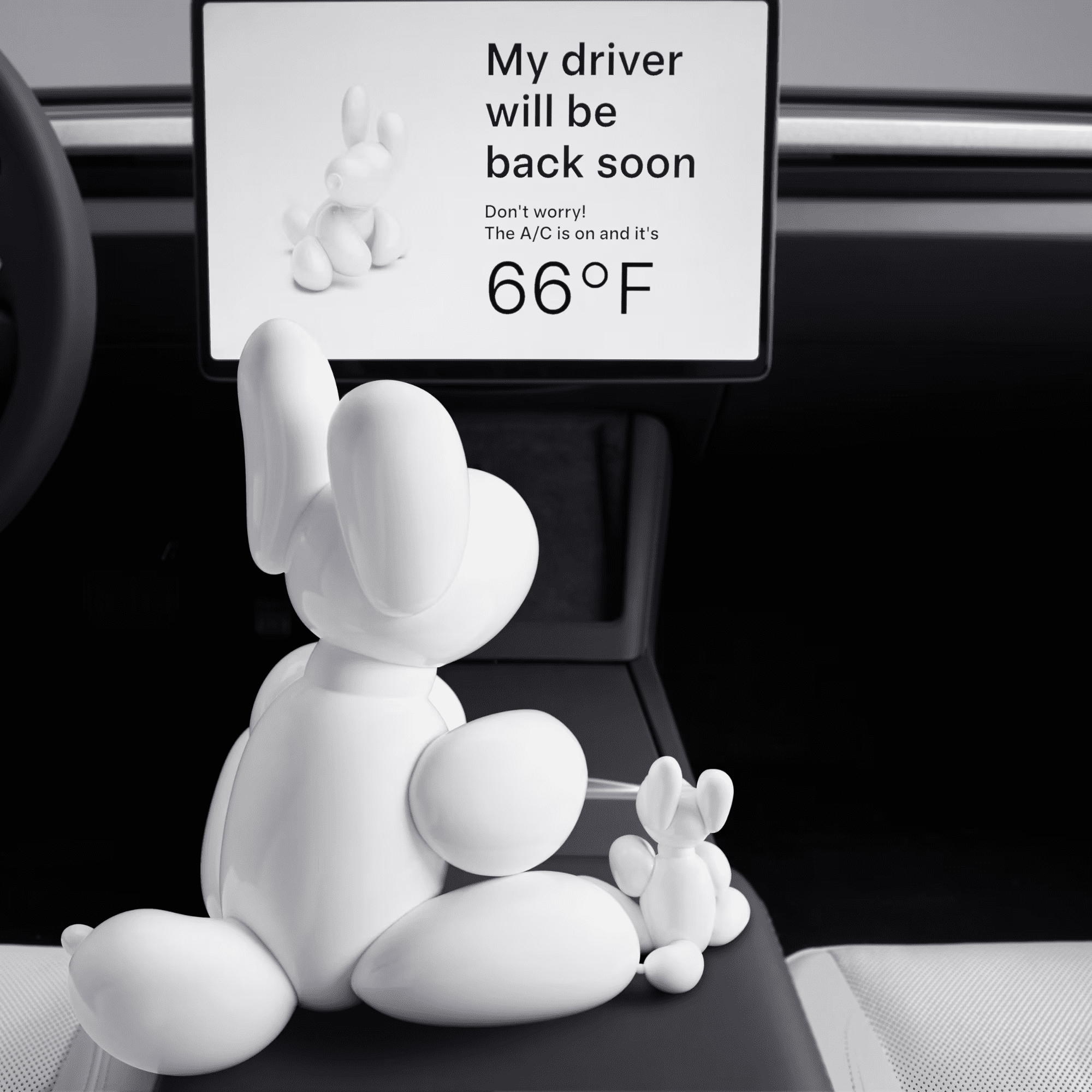 Realising that people may need to keep their pets in their cars on hot summer’s days, Tesla have a specific setting accessed from their large touchscreen that allows you to set the climate control when you are not in the car specifically for your dog. Not only that, but a message is displayed on the large screen telling passers by that this function has been activated as to not concern them at the fact a dog has been left in the car on a hot day.